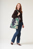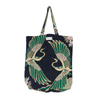 Symbolising good fortune and longevity, this emerald green Crane tote bag design is a perfect addition to your autumn and winter wardrobe. These large, graceful cranes in sand, pink and emerald, green fly across a nearly black base.