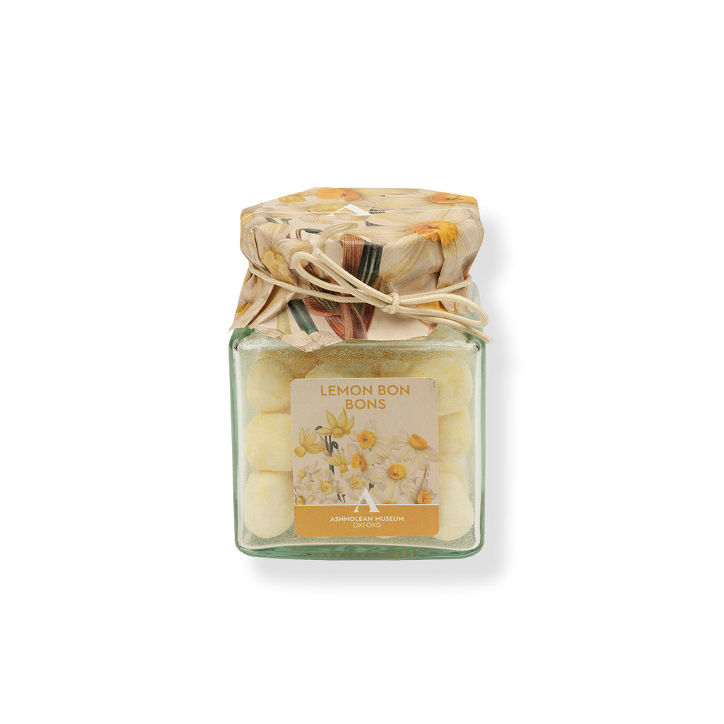 The top of each jar is wrapped with an exclusive Ashmolean branded lid cover featuring decorative colour-themed artwork taken from the museum's collections, and tied up with string to provide a pleasing vintage aesthetic. After enjoying the sweets, the decorative glass jar can be repurposed to store other treats such as homemade jams and chutneys, or to display flowers, candles, or whatever else you fancy!