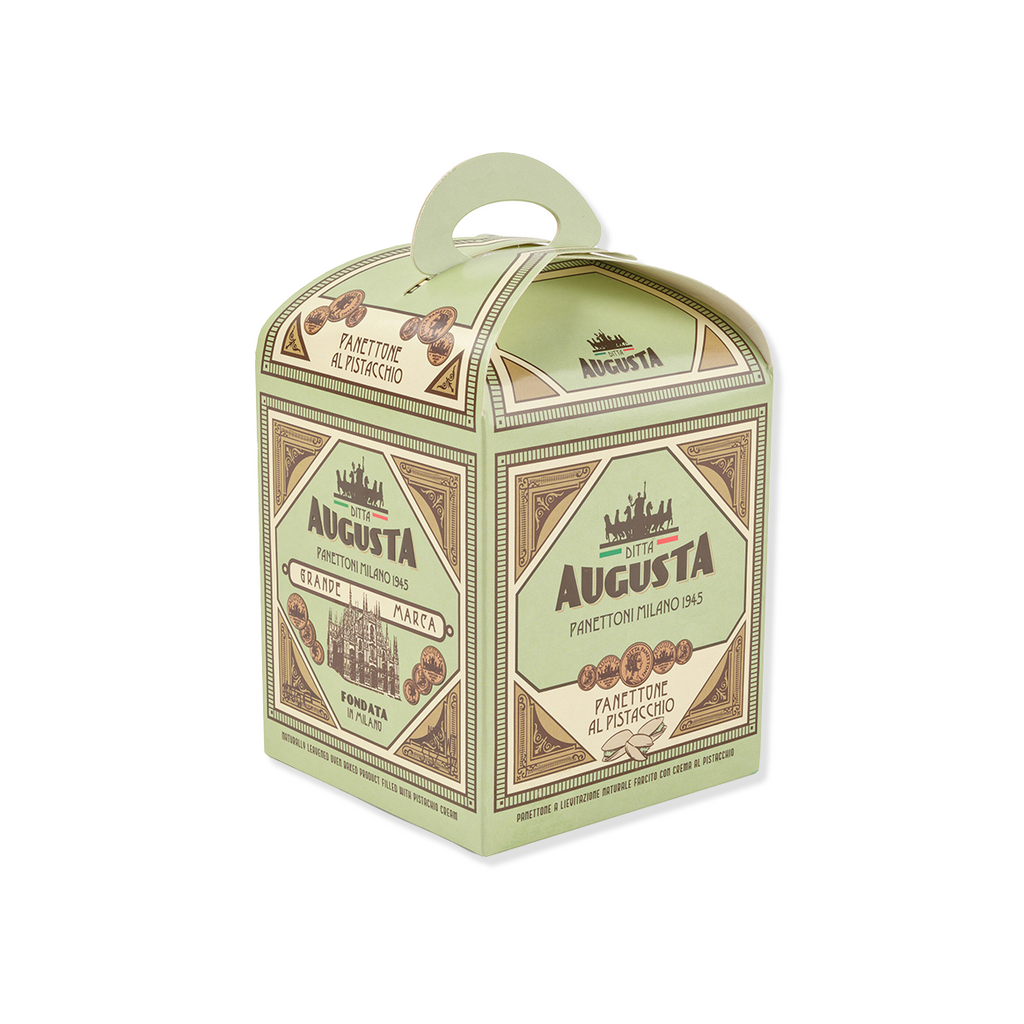 Augusta Panettoni was started in 1945 in Milan by a master pastry chef, custodian of the traditional 'Panettone Milano' recipe. The dough is left to rise naturally, then cooked slowly and carefully and allowed to cool for a full twelve hours, giving the cake its unique taste and flavour.