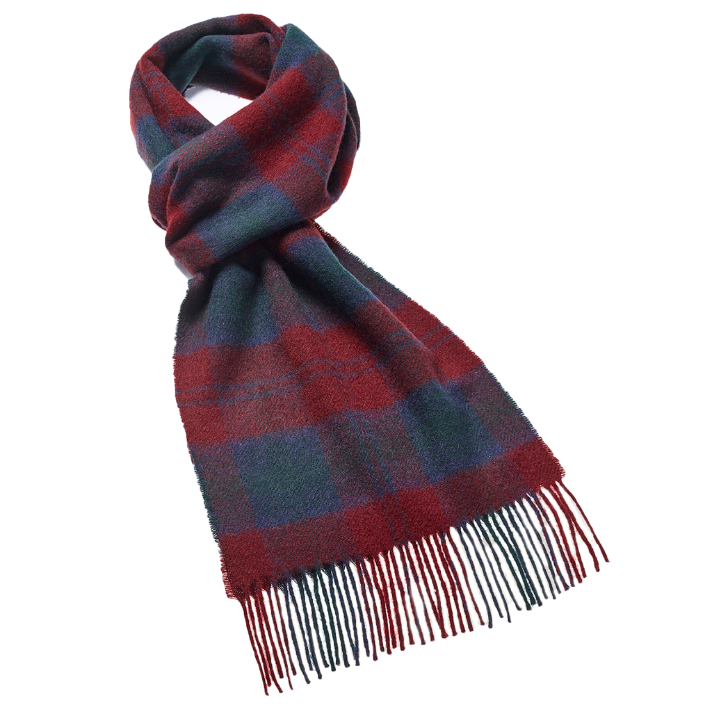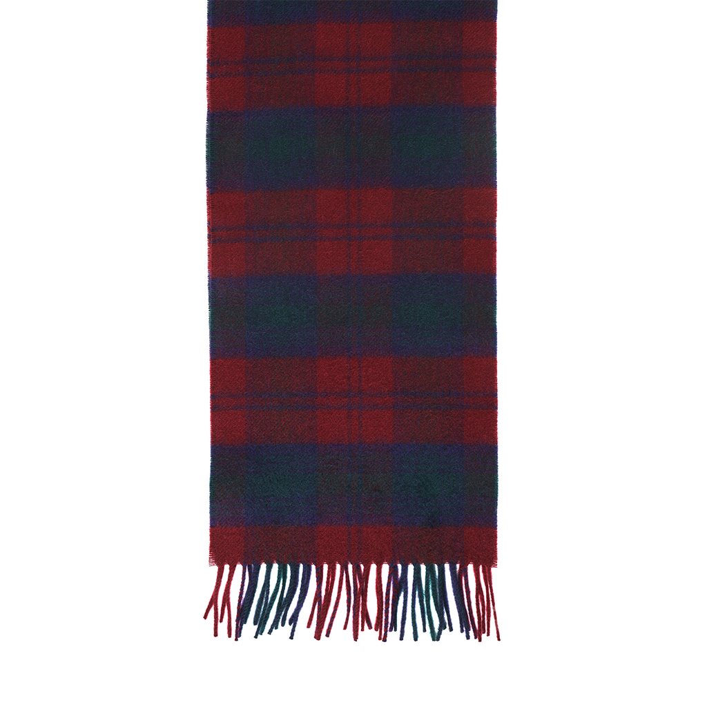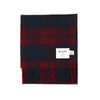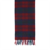 This red and blue Lindsay Merino scarf design is inspired by the traditional plaid designs reminiscent of the Scottish Highlands.