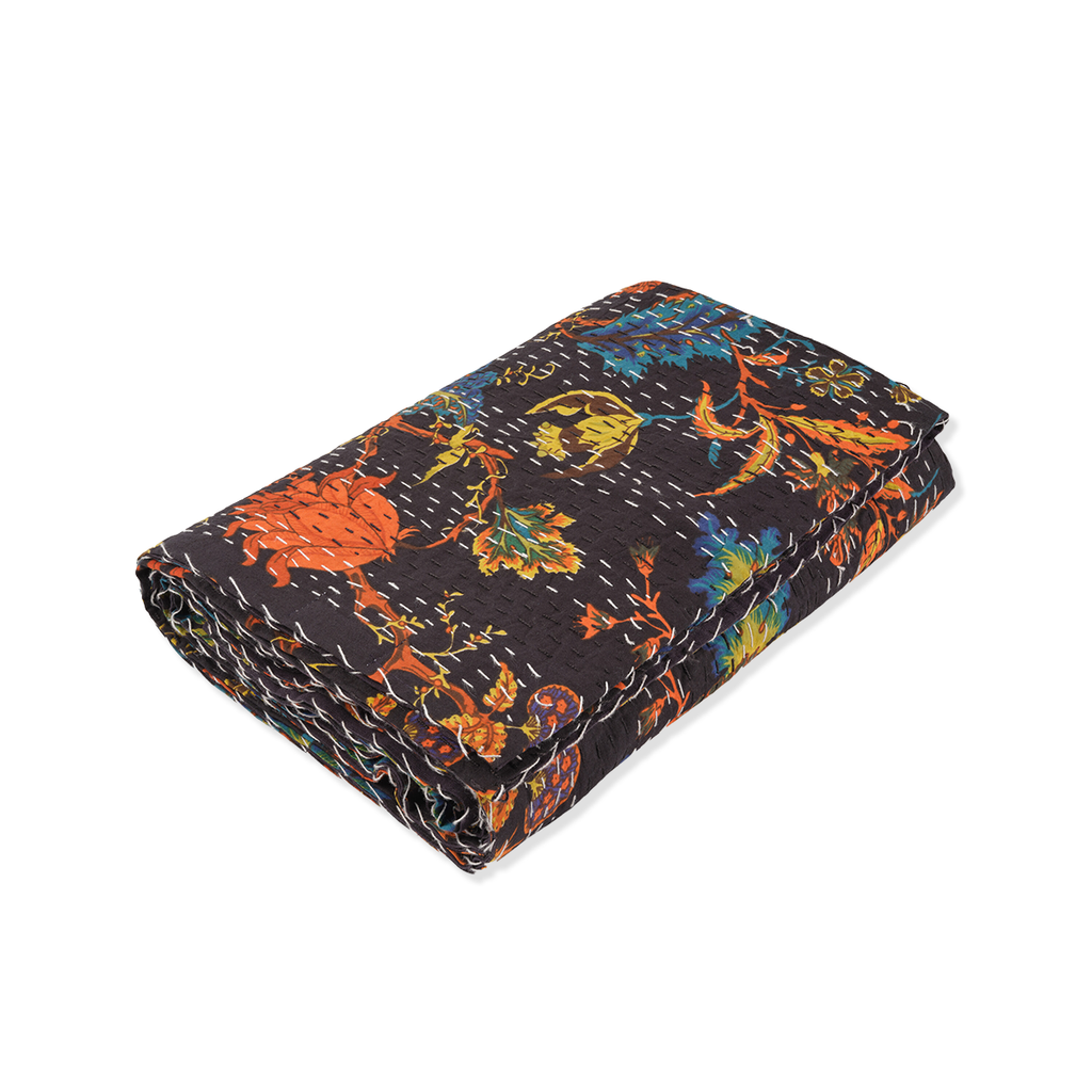 This range of throws uses the technique of ‘Kantha’ – a running stitch, one of the oldest forms of Indian embroidery, which was traditionally used in West Bengal and Bangladesh. The same embroidery design technique that can be found on our Silk Kantha Scarf.