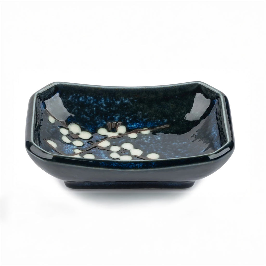 With a rich deep royal blue glaze and a delicate white cherry blossom design, this dish is ideal for you to add your wasabi and soya sauce ready for you to enjoy your plate of sushi in the traditional Japanese way.