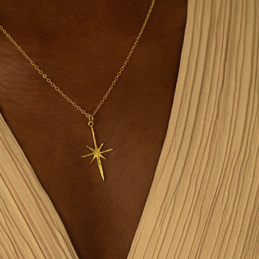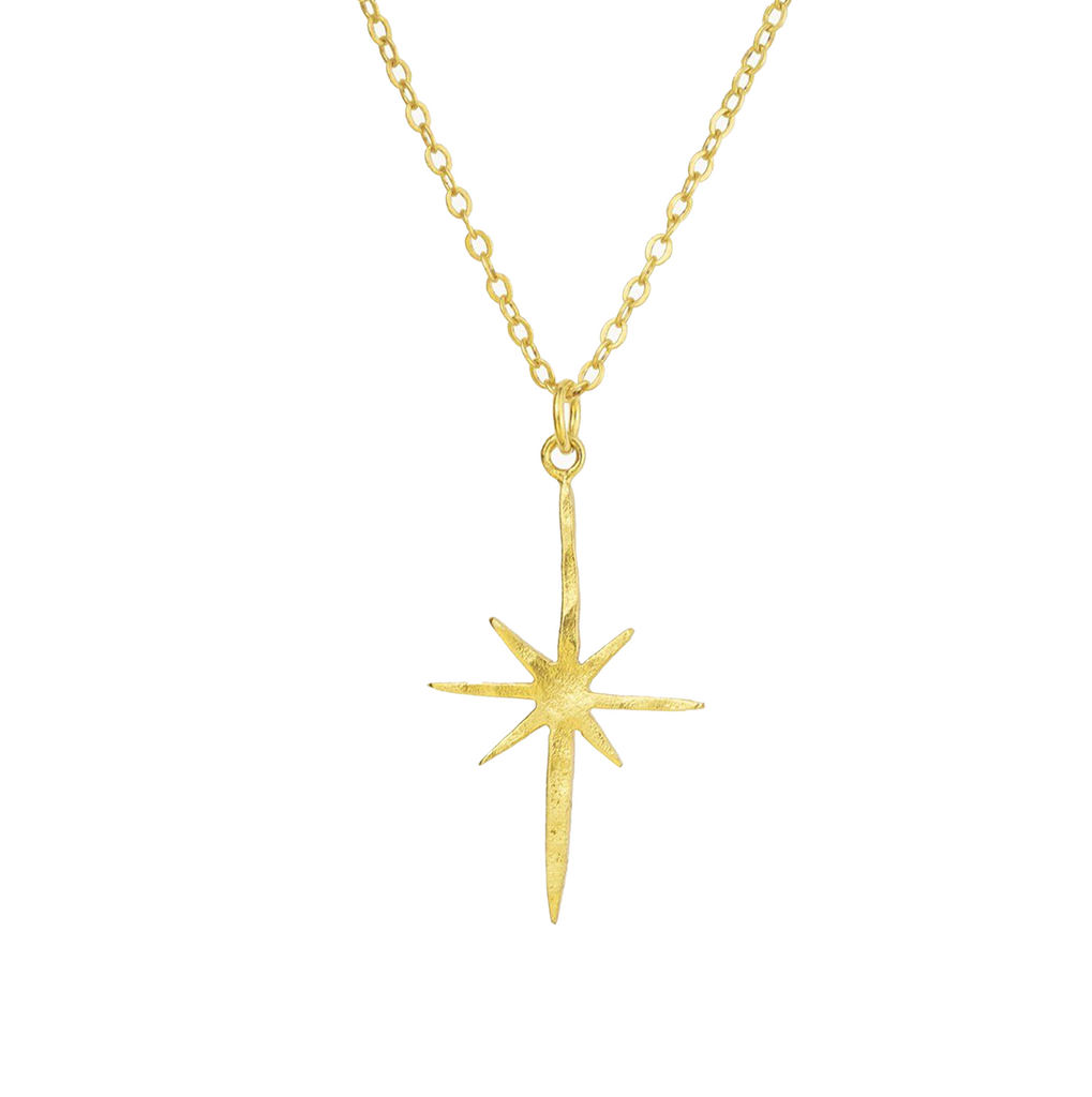 The gold-plated Northern Star necklace features a stunning star-shaped pendant that is sure to captivate.