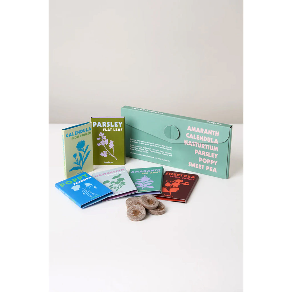 Created with urban gardens in mind, this kit contains 6 seed packets, peat-free soil discs and handy plant labels. Discover the ornamental blooms of Amaranth 'Red Army', savour the edible delights of Calendula 'Snow Princess', marvel at the trailing splendour of Nasturtium 'Gleam Field', elevate your culinary adventures with delicious fresh Parsley, admire the enchanting papery flowers of Poppy Pandora and witness the climbing wonders of Sweet Pea 'Royal Family' as it weaves its way around your urban paradise.