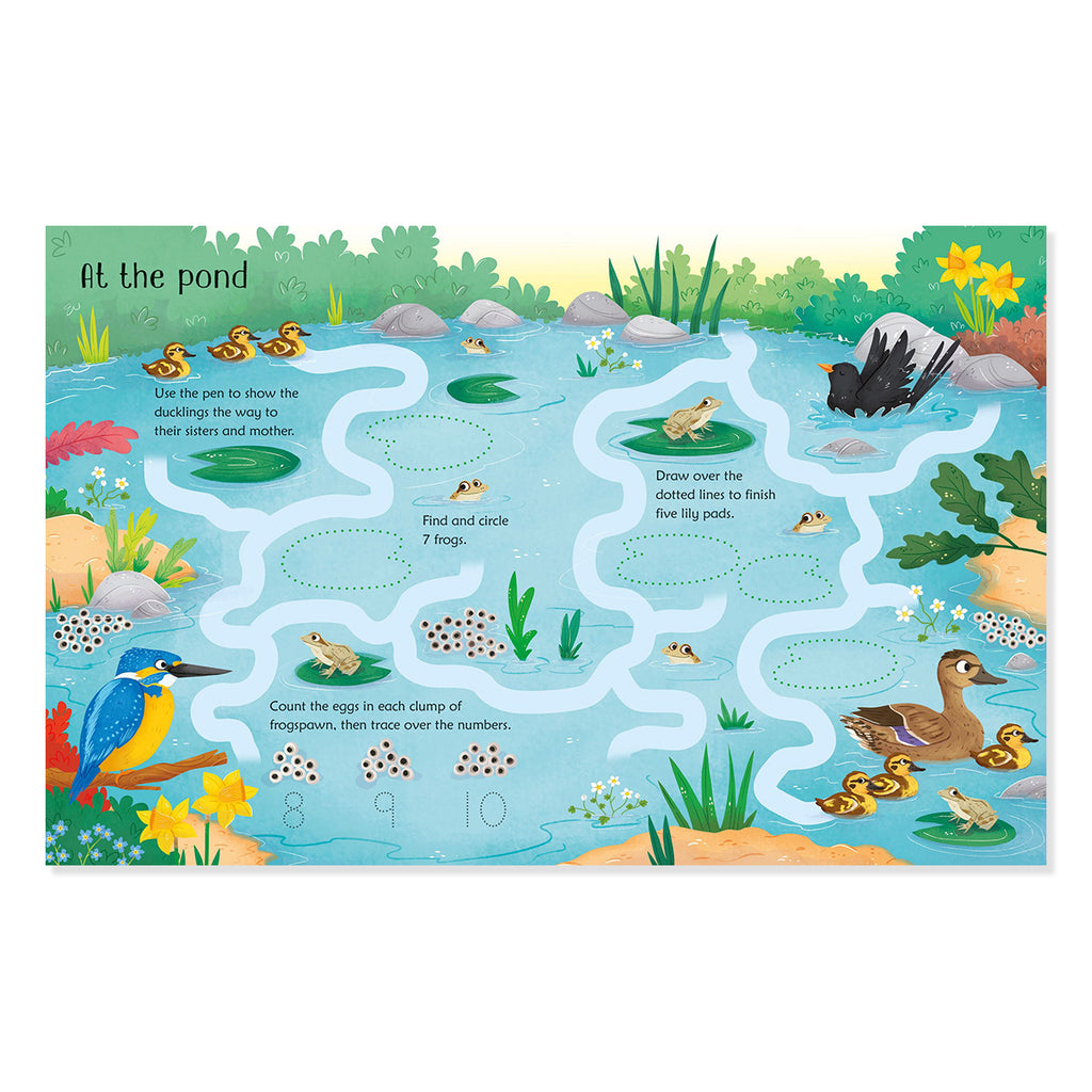 Spring-themed activities come alive with this durable wipe-clean book and attached pen, ideal for developing motor skills while keeping young learners entertained with reusable, mess-free fun.