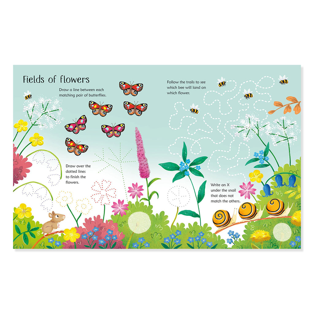 Engage young minds with this reusable spring activity book featuring dot-to-dot puzzles, spot-the-difference challenges, mazes, and line-tracing exercises. The included special pen marks the pages, which wipe clean instantly for endless reusability.