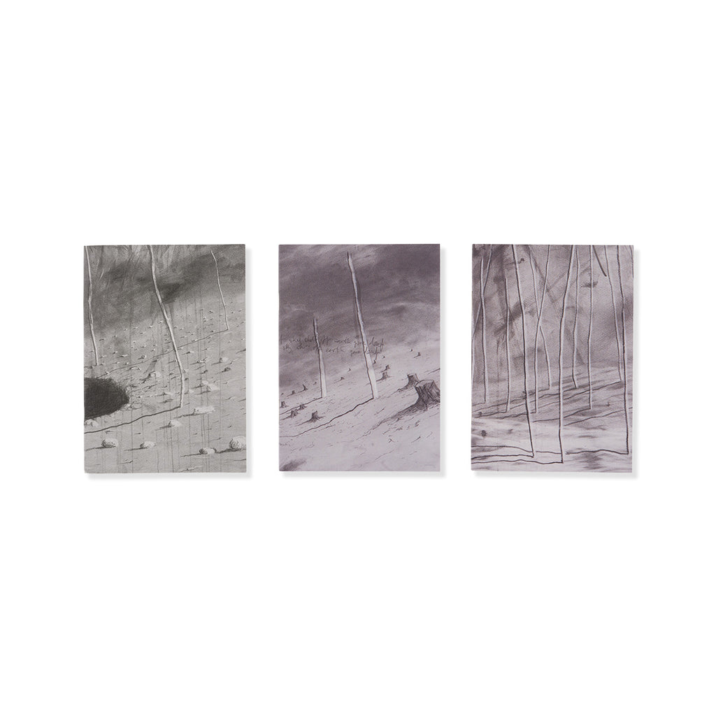 A set of three softcover notebooks in an A6 size with cover designs inspired by The Ashmolean Museum's This Is What You Get: Stanley Donwood, Radiohead, Thom Yorke exhibition. Each notebook features a separate artwork on the cover from Stanley Donwood: Hole (2014), Poles (2014) and Shadowed Poles (2014). The cover art for this set of three notebooks is inspired by Thom Yorke's second studio album Tomorrow's Modern Boxes (2014).