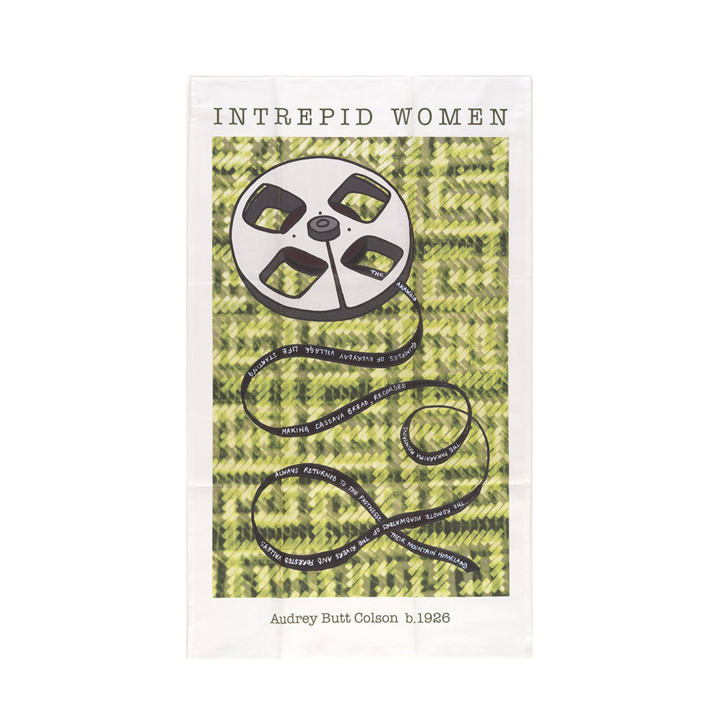 This tea towel has been designed by Marina Price. Audrey Butt Colson started doing fieldwork in Guyana in the 1950s, making a film about the cultivation techniques of the Akawaio people. Her fieldwork provided evidence that demonstrated their sustainable lifestyle and harmonious relationship between property ownership and social obligations. Her work highlighted the disruptive effect of gold and diamond mining for the Akawaio and Arekuna people, who have managed their land in the Upper Mazaruni District with minimal environmental impact, through the generations from pre-colonial times until the present day.