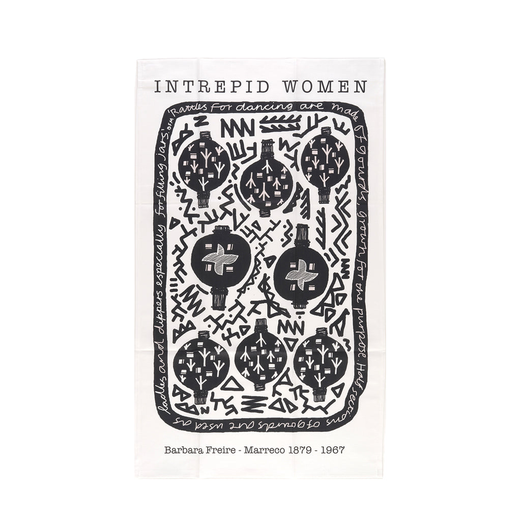 This tea towel has been designed by Juliet Bankes. At a time when men controlled the discipline of anthropology and Oxford refused to allow women to collect their degrees, Barbara Freire-Marreco was the first woman to enrol on the Anthropology Diploma in 1906, achieving a distinction in 1908 and becoming the first English female anthropologist to do fieldwork in the United States. She made two fieldwork trips to North America, living in Santa Clara with Pueblo people, and in Arizona with Yavapai people, participating actively in daily life, helping to gather and learn about local medicines, contributing to farm and women’s work.