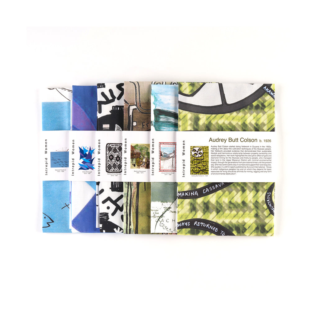 Through these different tea towel designs, discover the incredible stories of six female collectors featured in the Pitt Rivers Museum Intrepid Women exhibition, as they embarked on fieldwork in the early to mid-20th century.